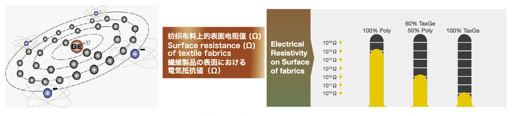 Germanium alloy is a semi-conductor that can rapidly conduct electrons on the fabric's surface. Using germanium alloy directly into textile fibers can make it so that the fabric spun from these fibers has anti-static functions.